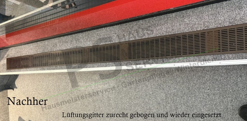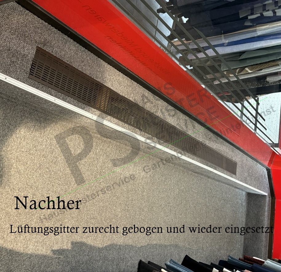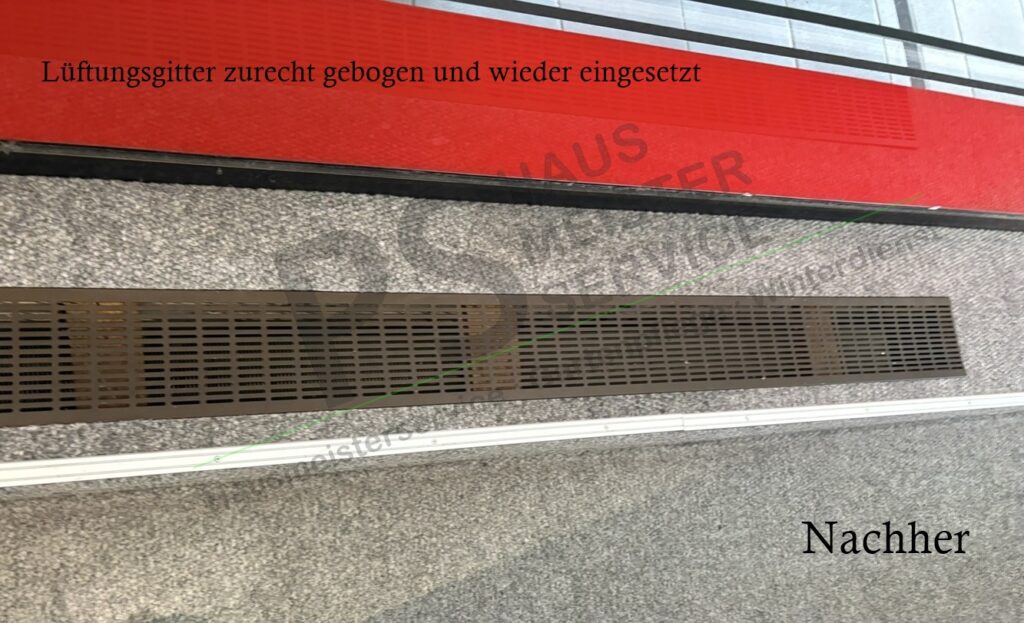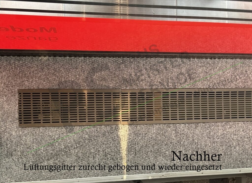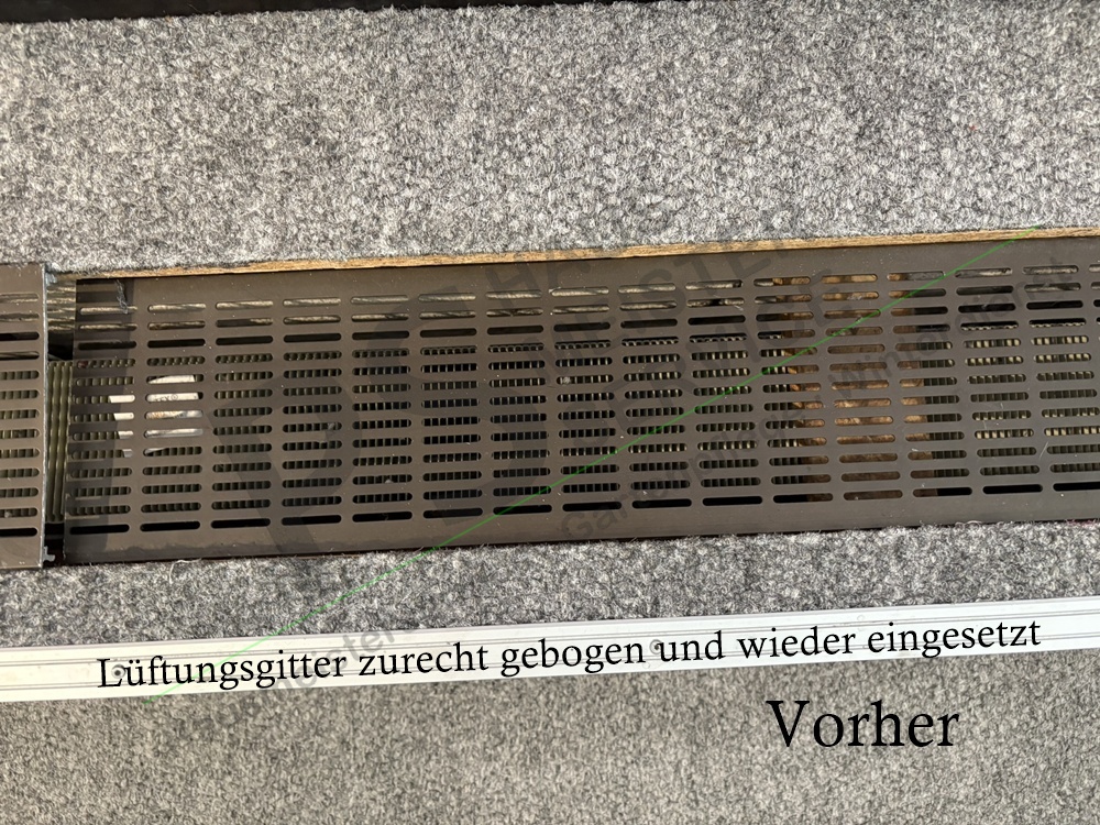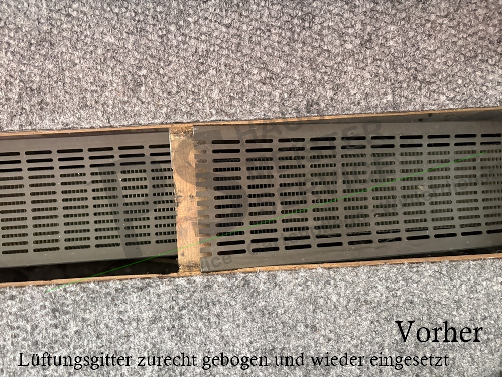 Hier wurden Lüftungsgitter wieder zurecht gebogen und vernünftig eingesetzt.