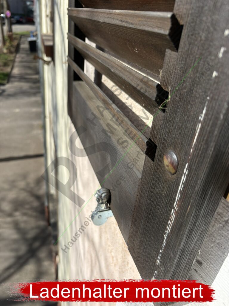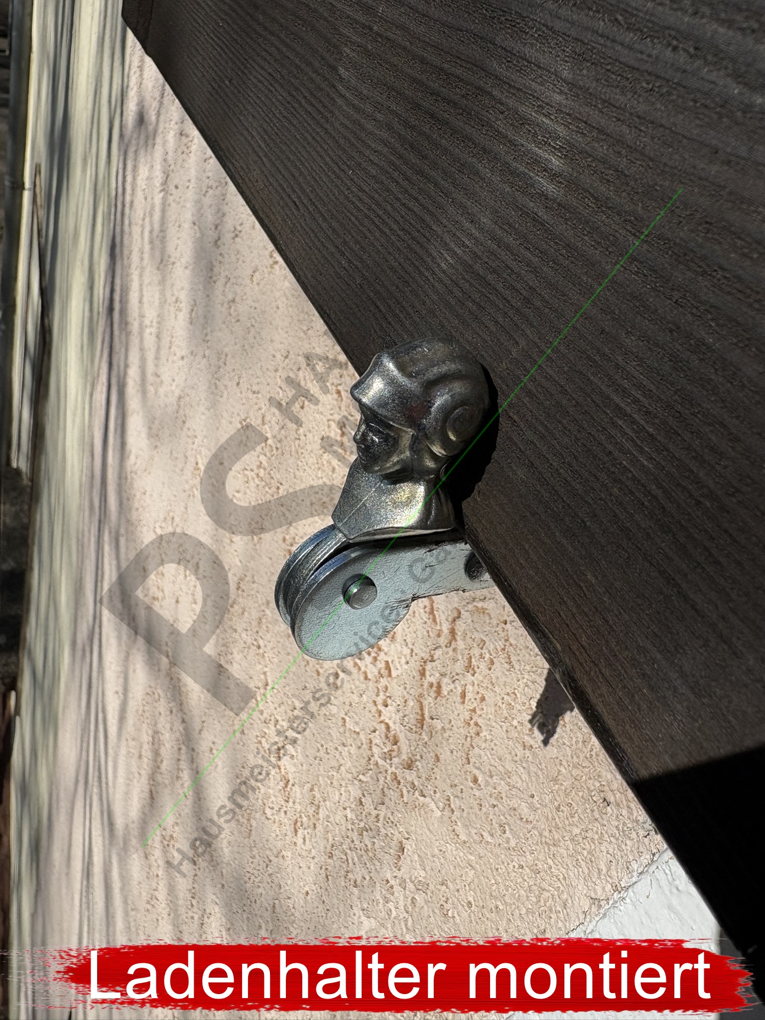 Hier habe ich einen Ladenhalter montiert. So knallt der Laden nicht immer wieder auf und zu.