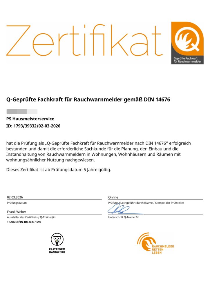 Ich bin zertifizierte Fachkraft für Rauchwarnmelder