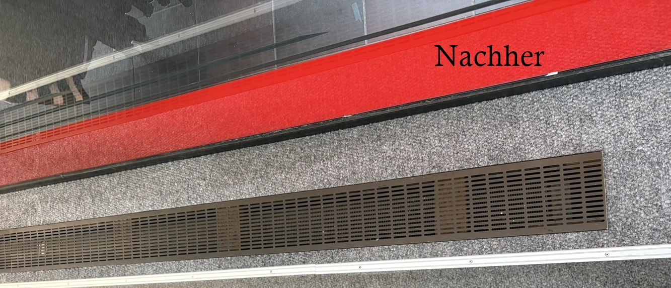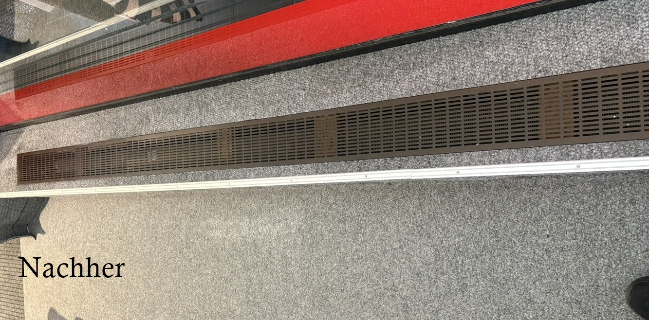 Hier wurden Lüftungsgitter wieder zurechtgebogen und eingesetzt.